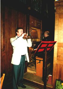De 1985 à 1995, René Ledey se consacre entièrement à la musique instrumentale. Il devient sociétaire de l’harmonie de Digoin. En 1986, ce sont les retrouvailles avec André ALSUNARD. Tous deux décident de mettre en commun leur passion musicale. « Trompette & Orgue » devient leur objectif. Un travail sérieux et régulier leur permet de constituer rapidement un répertoire qui leur apporte une joie profonde. Cette joie, il la feront rayonner autour d’eux par de nombreux concerts, offices liturgiques solennels, et cérémonies de mariage